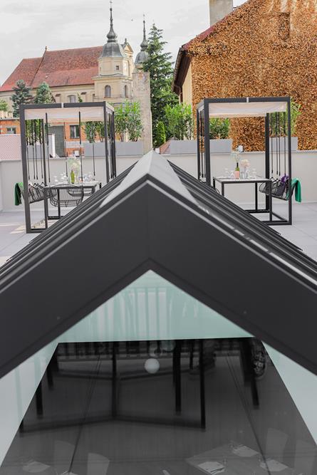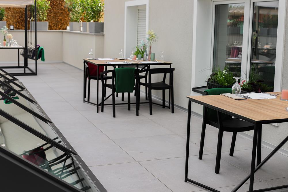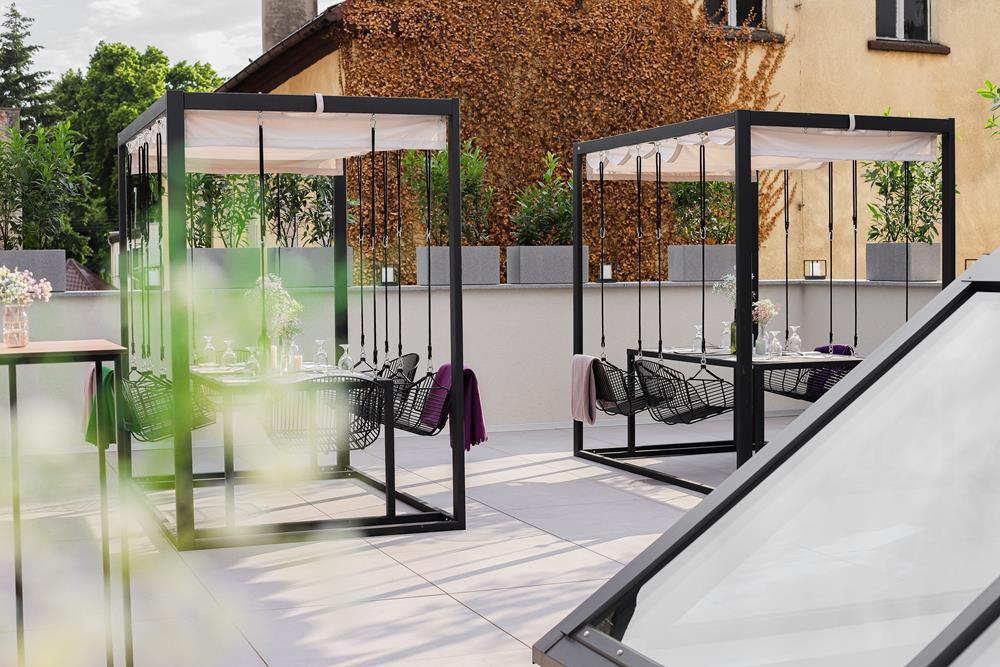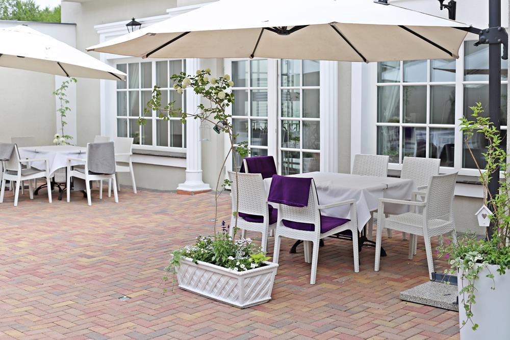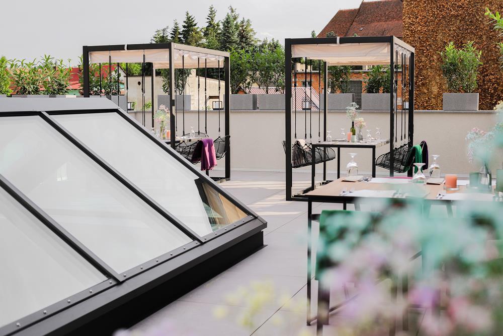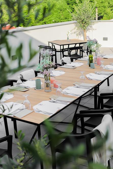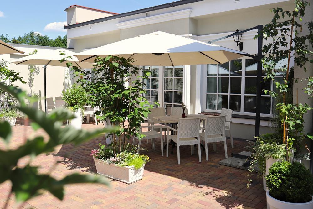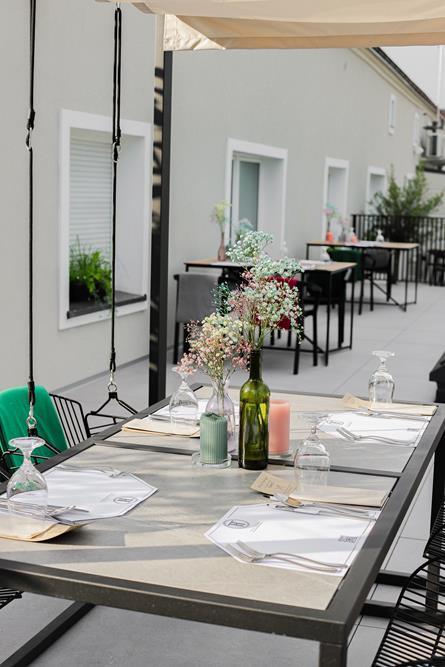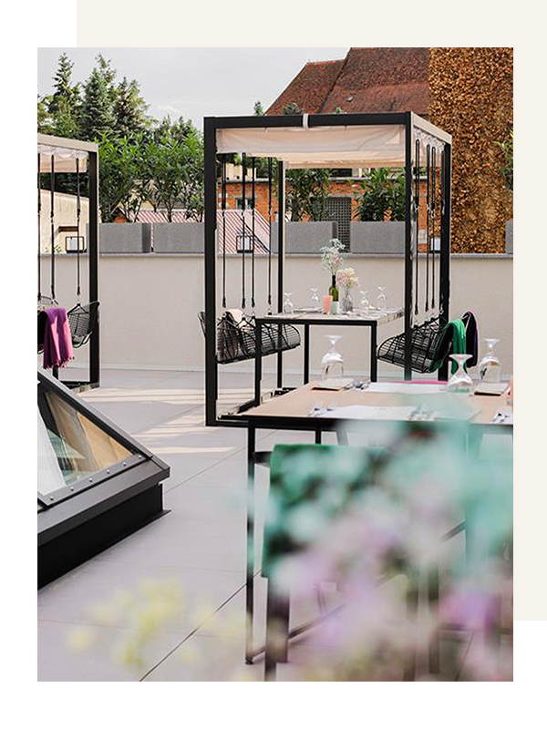 Przestrzeń na świeżym powietrzu jest otwarta w sezonie letnim i gwarantuje niezapomniane chwile relaksu. Zarówno obok restauracji, jak i na tarasie z malowniczym widokiem, będziesz mógł cieszyć się świeżym powietrzem i przyjemnym ciepłem letniego słońcem.